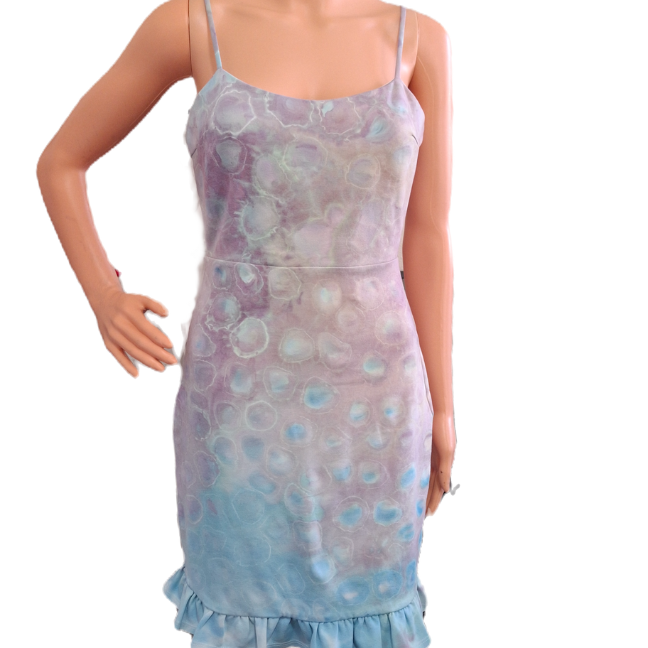 Handcrafted with a shibori pattern that mirrors the serene image of clear water running through rocks, this dress brings a touch of nature’s beauty to your wardrobe.